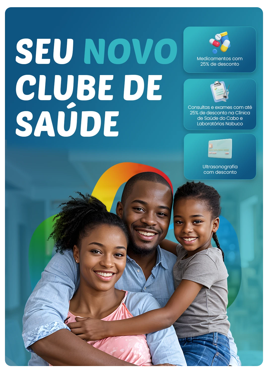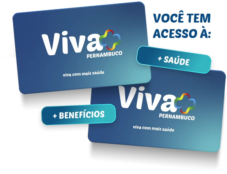 *Cartão de desconto não é plano de saúde, não garante e não se responsabiliza pelos serviços oferecidos e pelo pagamento das despesas, nem assegura desconto em todos os serviços obrigatoriamente garantidos por plano de saúde. Tudo o que o cliente usar ou comprar será por ele pago ao prestador, assegurando-se apenas os preços e descontos que constam na relação de empresas e serviços conveniados disponibilizados no site www.viva+pernambuco.com.br